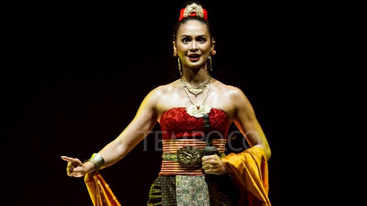 Aktris Hana Malasan memerankan Ratu Kalinyamat dalam pementasan Monoplay Melati Pertiwi yang digelar di Gedung Kesenian Jakarta, Pasar Baru, Jakarta, 25 November 2025. Tempo/Ilham Balindra