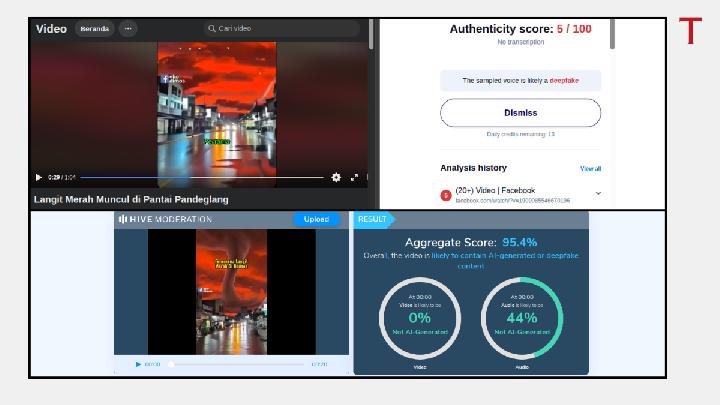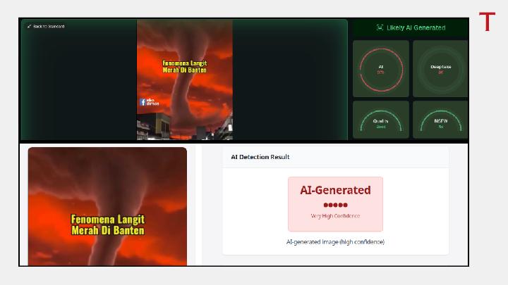 Tempo verified the content using visual observation, comparing it to the original video, and using artificial intelligence (AI) detection. Although the red sky phenomenon did occur in Pandeglang Regency, there was no tornado. The circulating video was created using AI.