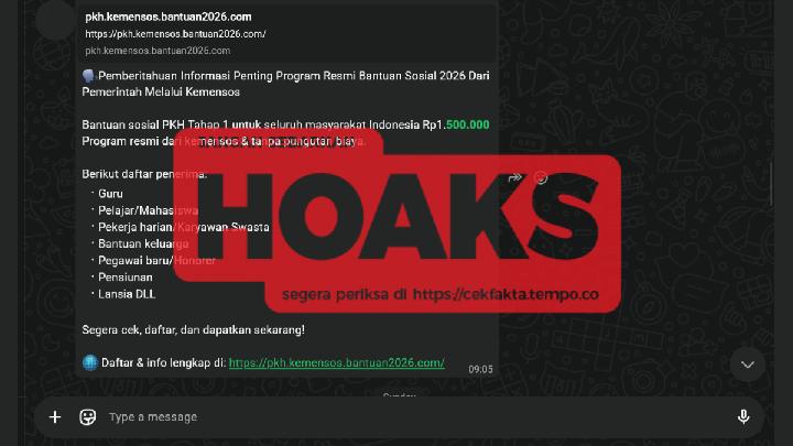 Based on Tempo's investigation, the registration link for the purported 2026 PKH social assistance program of Rp1.5 million is false.
