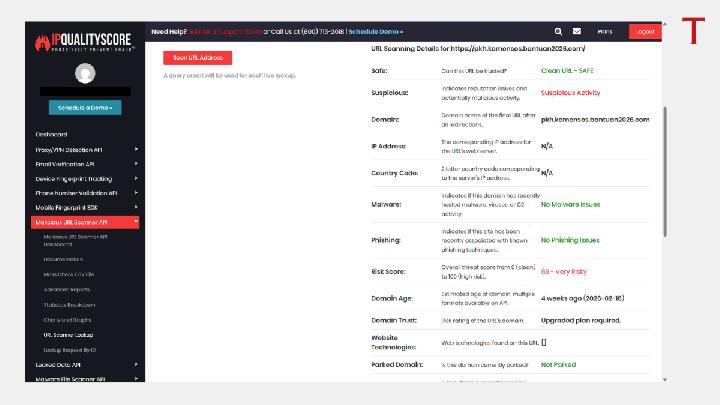 Tempo then analyzed the URL using the IPQuality Score tool to evaluate its security level. The site received a score of 89 percent, signifying it is unsafe and likely a phishing scam.