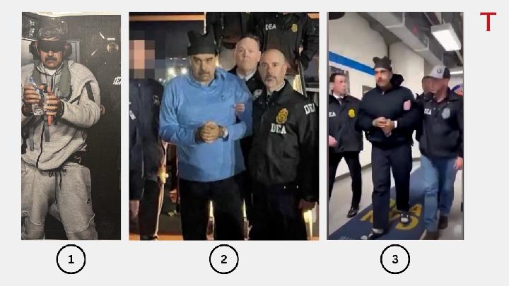 Three photos of Maduro after the kidnapping can be seen in the following image: