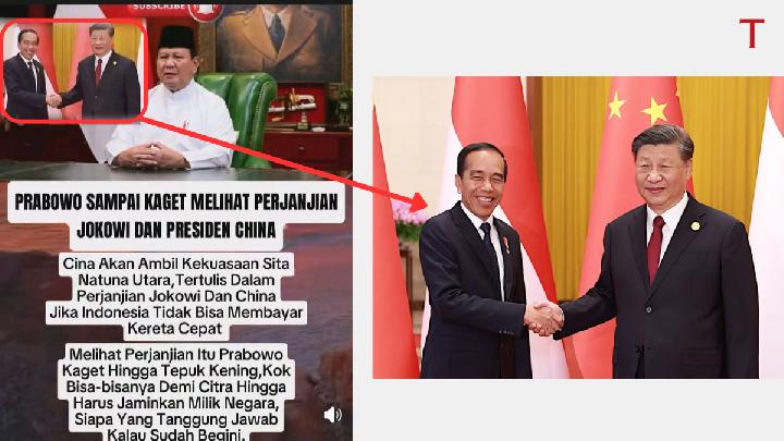 One widely shared post reads: “Prabowo was shocked after seeing Jokowi’s agreement with the Chinese president. China will seize control of North Natuna if Indonesia fails to repay the high-speed rail debt.”