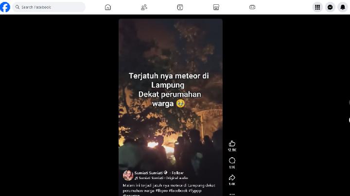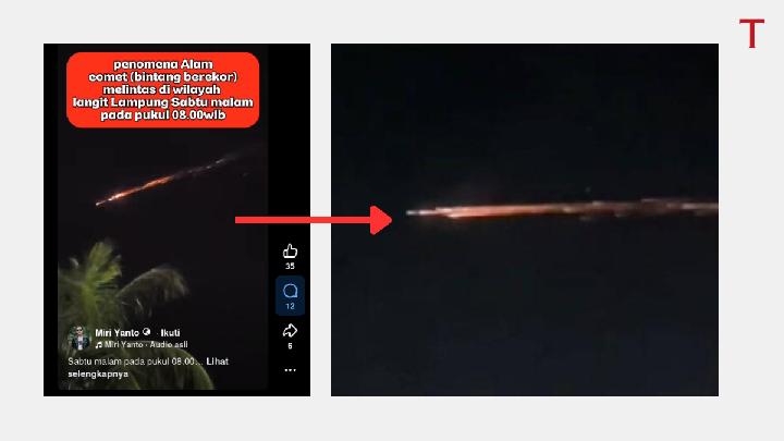 TEMPO.CO, Jakarta - In early April 2026, social media platforms, including Facebook account 1 and account 2 [archive] and various TikTok users, were flooded with videos of a luminous object purportedly exploding over a village in Lampung Province. Speculation ran wild, with claims labeling the phenomenon a comet, a meteor, or even a mystical fireball.