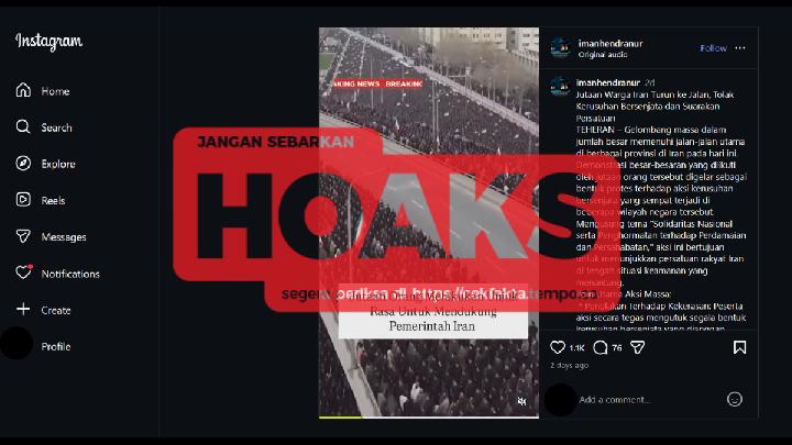 TEMPO.CO, Jakarta - A video claiming millions of Iranians were protesting in support of the the country's government circulated on Instagram [archive] and TikTok on January 12, 2026. This content circulated amidst massive protests by Iranians in recent days. The protests were sparked by economic issues such as high food and fuel prices and high inflation.